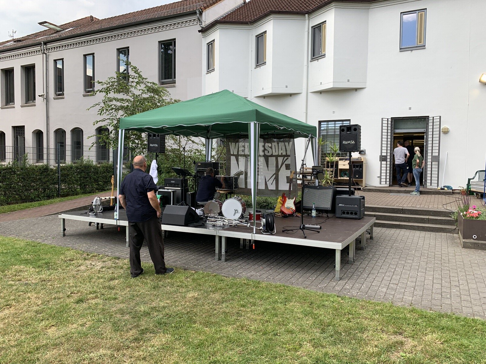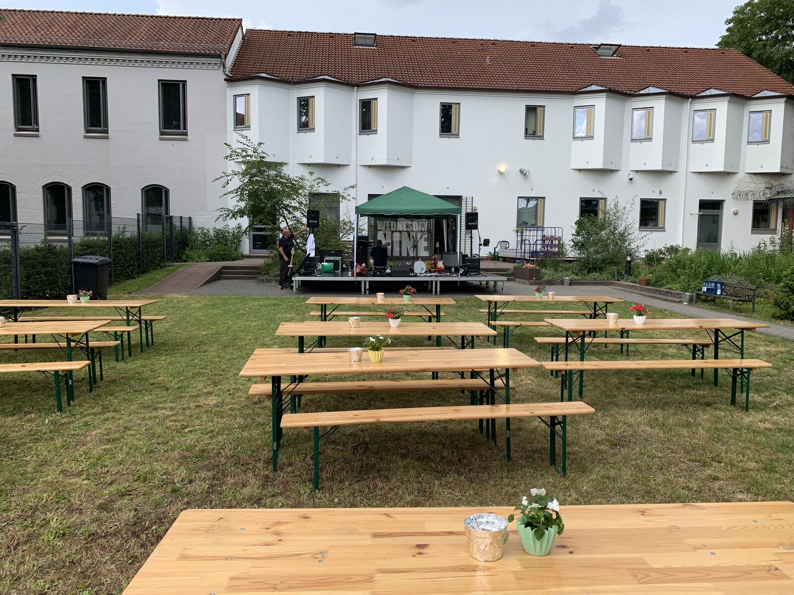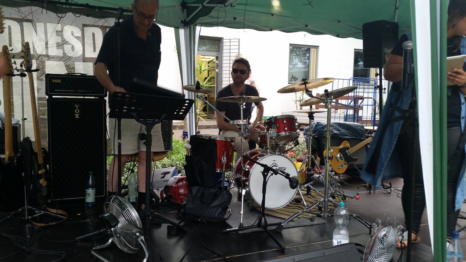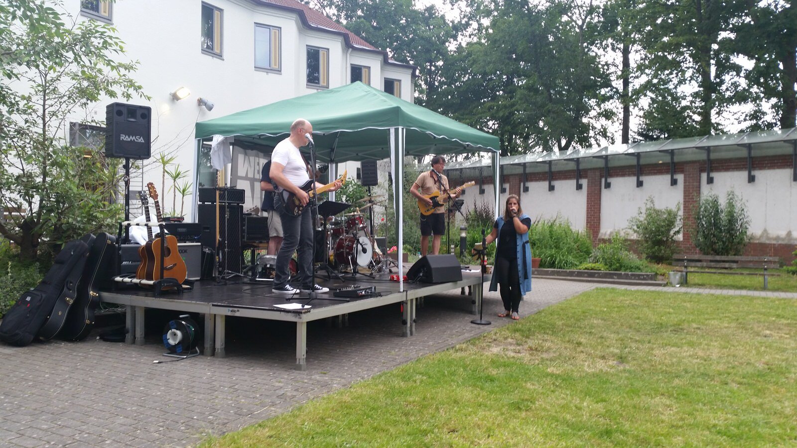 Es war heiß. 29 Grad in Bremen sind nicht so häufig (es war der 19.6.19) – und durch die schwüle Luft fühlte es sich noch deutlich heißer an. Auf das Sommerfest in der Forensik des Klinikums Bremen-Ost hatten wir uns schon gefreut. Wir durften schon im vergangenen Jahr erleben, wie sich die Patienten über etwas Abwechslung und eine Live-Band gefreut haben. Und umso toller war es, dass wir gleich noch einmal spielen durften.